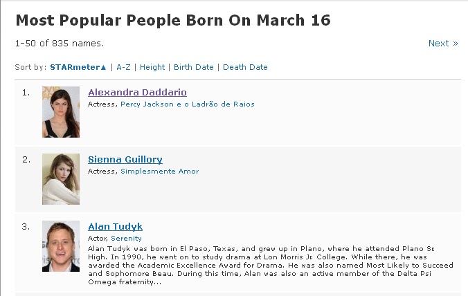 Isso mesmo! Alex é a pessoa mais popular nascida dia 16 de Março, segundo o Print do Daddario Brazil.
